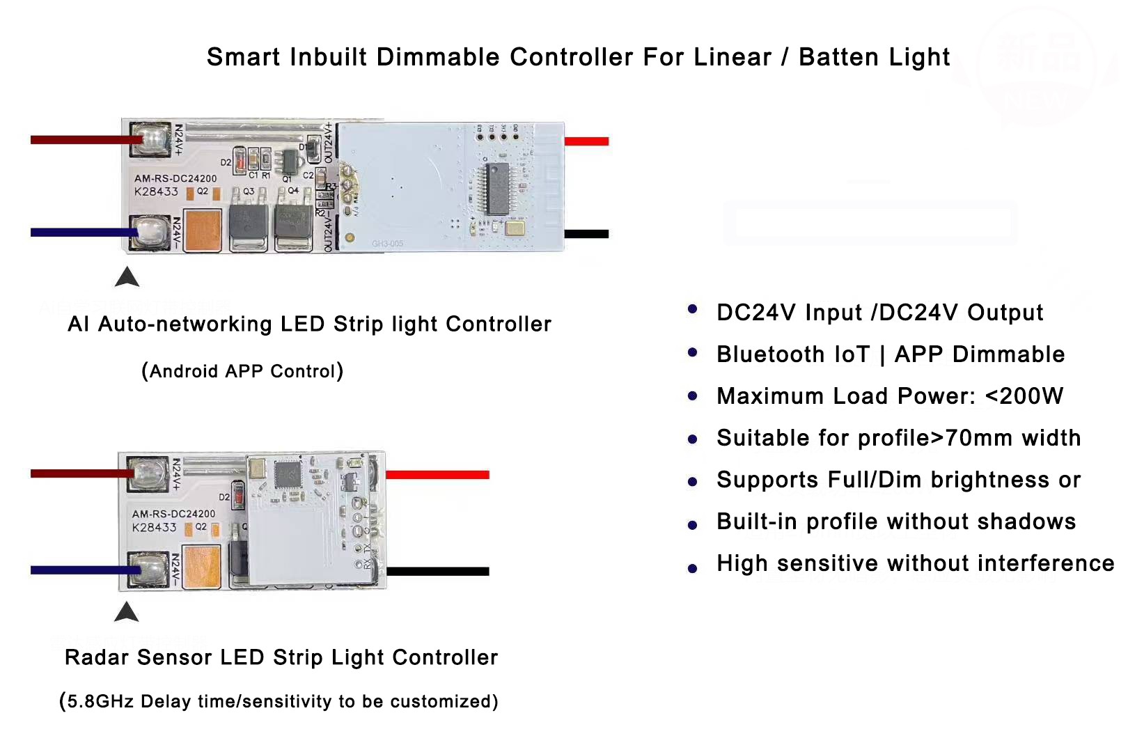 Turn any DC12V/24V LED strip into a smart motion-activated light with our built-in microwave radar sensor controller. No visible parts, no messy wiring – just seamless, high-end lighting with automatic on/off and dimming. Perfect for retrofits, saves up to 70% energy!